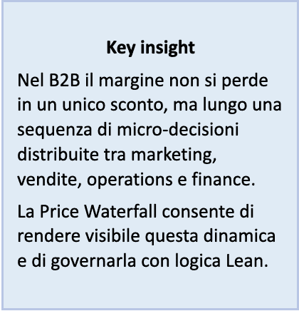 Gestire la Price Waterfall con logica Lean significa non accontentarsi di sapere dove si perde valore, ma utilizzarne la logica per prendere decisioni operative: